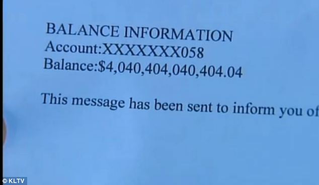 He told KLTV: ‘I was definitely surprised when I looked in my account and saw that much money in there.
