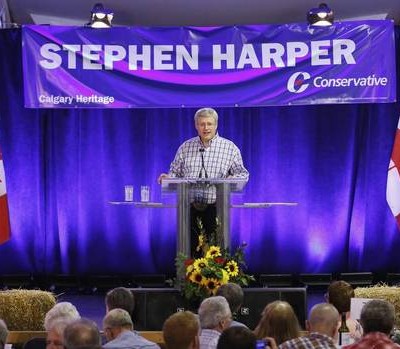 Harper said the economy is “rock solid” in a fragile global environment and his government has created jobs, lowered taxes and increased trade agreements with other countries, including the European Union.