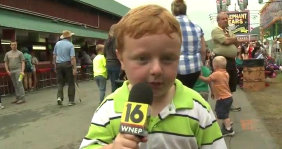 Noah Ritter, 5, apparently gave some very interesting information about the Wayne County Fair to TV Station WNEP in Scranton. His details of the Super Slide and excessive use of the word ‘apparently’ stole the show.