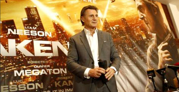 The Star Wars: Episode I The Phantom Menace actor’s comments came at a press conference for 20th Century Fox’s third installment of the ultra-violent action series Taken, in which Neeson’s character, Bryan Mills, relies on guns to avenge the death of his ex-wife. The film’s poster even features Neeson brandishing a gun.