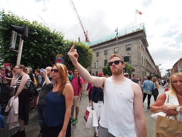 McElligott said that the pro-abortion contingent “was cursing and giving the finger to these little kids, shouting ‘Fuck you’ to passing families and getting up into their face. These are not a minority of the pro aborts,” he said. “These kind of insulting signs filled the sidewalk all the way down O’Connell Street.”