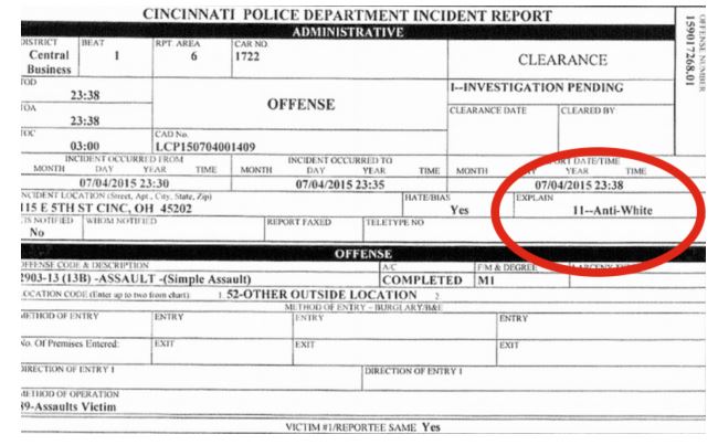 A police report initially stated that the incident was being treated as an “anti-white” racial attack, but Capt. Mike Neville subsequently backed off that explanation, asserting that the beating was not a racial attack.