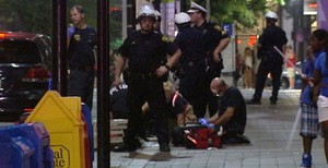 The altercation began in Fountain Square on Saturday night at around 11pm shortly after a music concert and 4th of July fireworks.