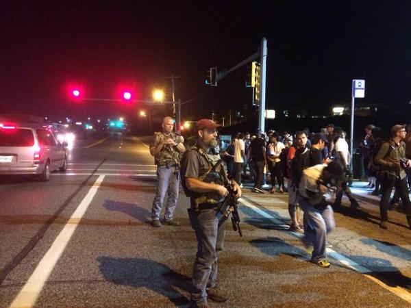 The appearance of heavily-armed white men stirred unease on the part of the civil rights activists from the Black Lives Matter movement, heavily represented at Ferguson protests.