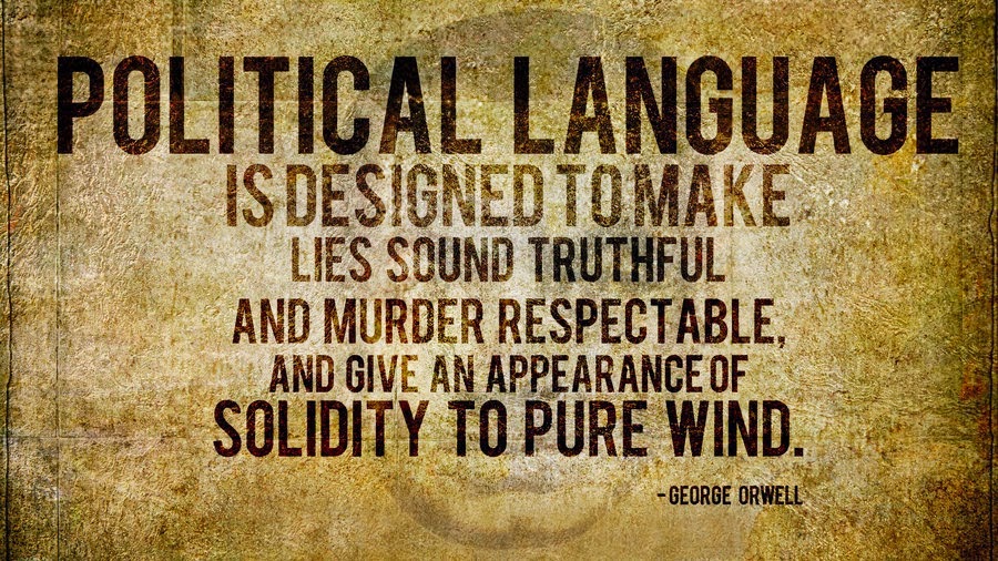 Political language is designed to make lies sound truthful and murder respectable, and to give an appearance of solidity to pure wind.