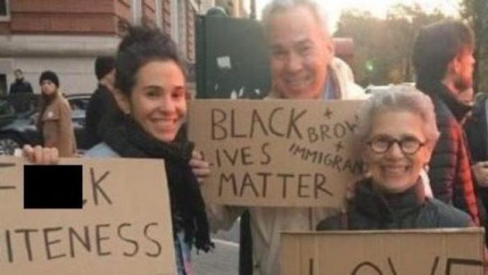 A senior aide to New York City mayor Bill de Blasio has taken heavy fire from both the right and the left for posting on Facebook a photo froma pro-immigration rally next to his sister holding a sign with the words “f**** whiteness” brandished loud and proud.