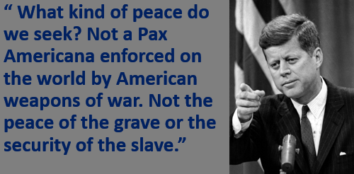 Global conflicts and wars are very addictive for the military-security complex, which craves 800 military bases around the world, $600 billion a year budget, and $35 billion/year of weapons export. Wars also mean massive debts for nations, which is exactly what the international banksters want. Global corporations are drawn to a unipolar world, since that guarantees them monopoly, cheap labor and raw materials, and access to customers. Social engineers and Cultural Marxists rely on monolithic corporate media to spread the same propaganda all over the world. Will the confluence of these forces refuse to accept a multipolar world? Will they push us into disastrous wars, potentially even a nuclear war? Let’s remember JFK’s “Peace Speech” from 1963: