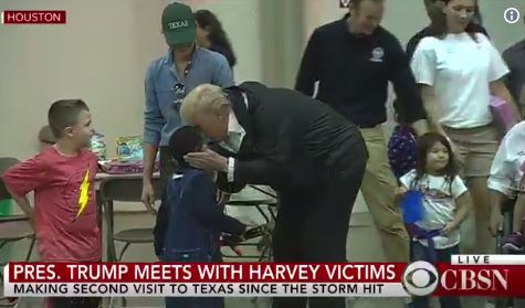 During one stop at a Houston shelter President Trump hugged the children and took selfies with the victims.
