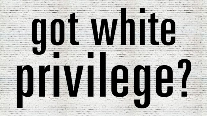 A worksheet given out to attendees listed 26 examples of “white privilege,” such as seeing people of their race widely represented in media and television.