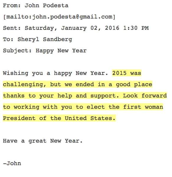 FLASHBACK=> In one of the leaked Podesta emails, the COO of Facebook Sheryl Sandberg emailed John Podesta saying she wanted Hillary to win “badly”. Sandberg also said she looked forward to working with Podesta to elect the first woman president of the United States.