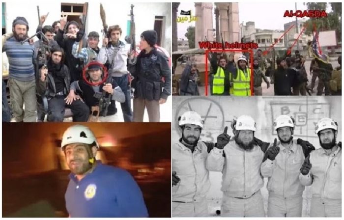 White Helmets members were present to welcome Saudi terrorist Abdullah al-Muhaysini, leader of al-Nusra (al-Qaeda in Syria) who the US government designated a terrorist for “acting for or on behalf of” al-Nusra, and helping to finance them.