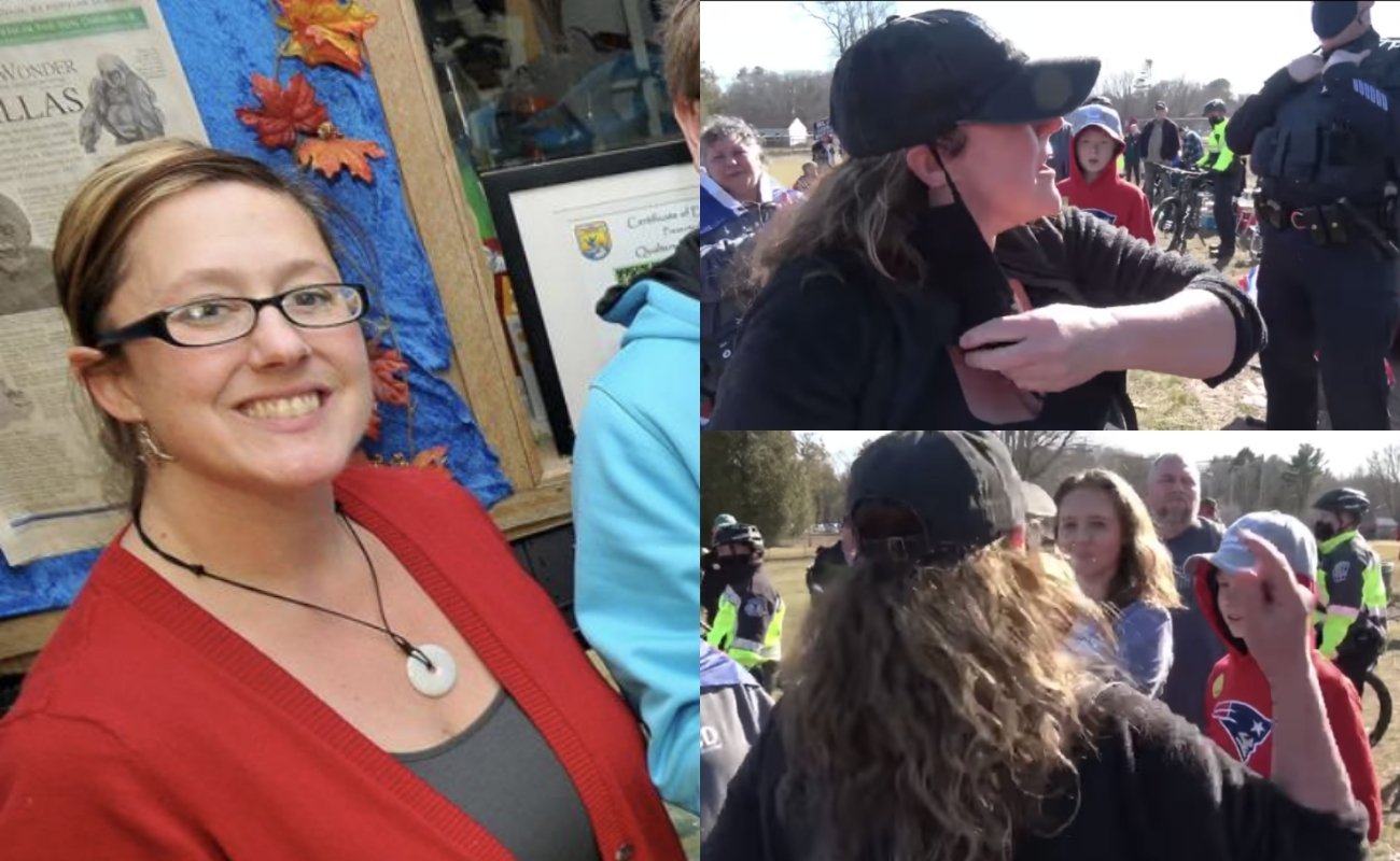 A science teacher at Mansfield Public Schools has been outed as a far-left extremist who harassed police officers and children during a recent anti-lockdown protest.
