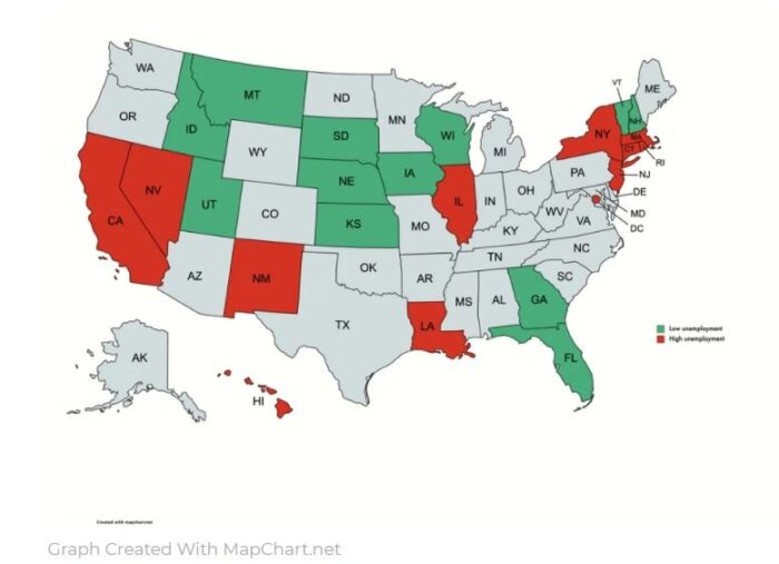 The map shows how Florida, with all of its seniors, has fared better than New York and California.