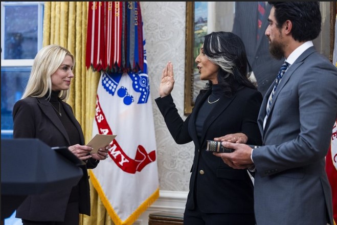 Tulsi Gabbard Officially Sworn In As DNI By AG Pam Bondi In the Oval Office