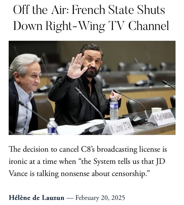 Censorship in France! The government shuts down C8, the most-watched conservative channel, this is a blow to freedom.