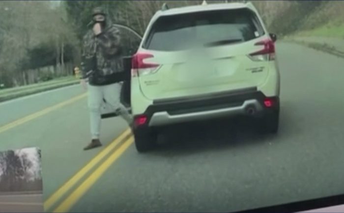 Without warning, a white SUV began tailgating her, laying on the horn, before recklessly cutting her off and forcing her to stop in the middle of the street.