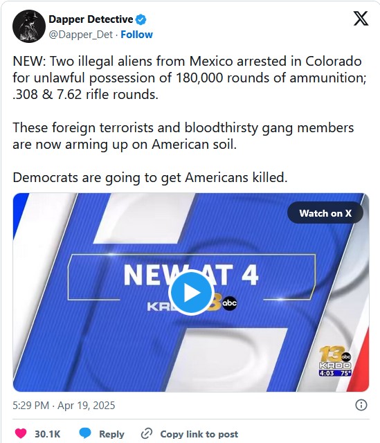 Two Mexican Nationals Busted in Colorado With 180,000 Rounds of Ammunition