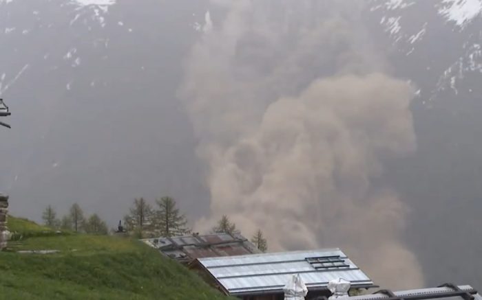 Video footage shows the moments the piece of the glacier thundered down the mountainside onto the village below: