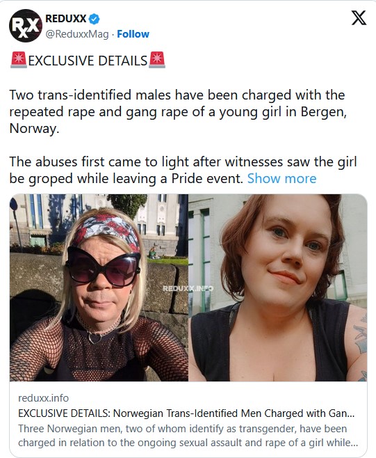 Now, it’s a good thing for individuals like this that I’m not in charge of the justice system, because acts like this deserve the harshest of punishments. Luckily for them though, Norwegian courts saw fit to hand the first “trans” pedophile an easy five-year (and some months) sentence, while the second “trans” pedophile was just given just 18 months, because “she” had lost “her erection” during the crime.