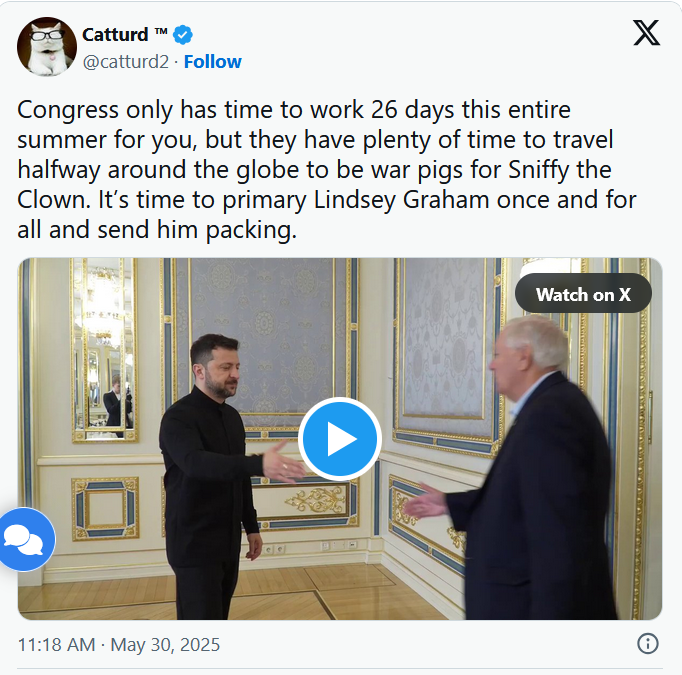 Lindsey Graham and some guy that looks like a walking corpse (I know, I know, it’s Blumenthal) just travelled to Ukraine to meet with Zelensky!