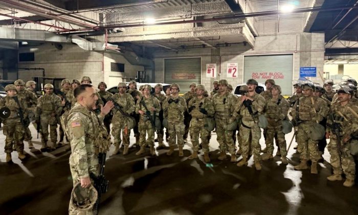 U.S. Northern Command confirmed over social media that members of the 79th Infantry Brigade Combat Team had arrived in the city. More troops are expected to arrive; Trump ordered 2,000 to the Los Angeles area to quell unrest and protect federal agents from violent demonstrators.