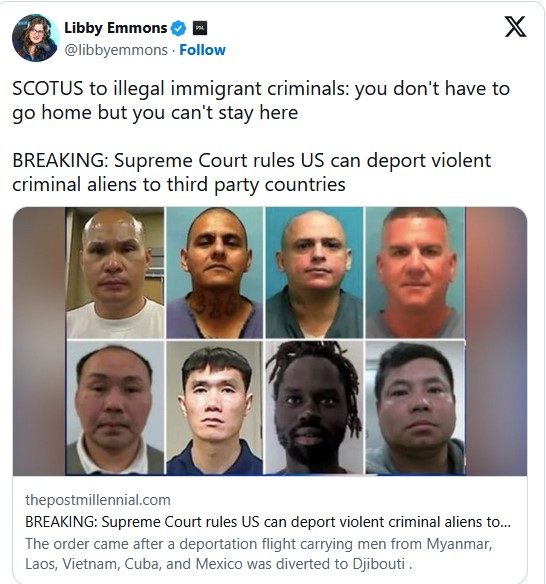 In a 6-3 decision, the Supreme Court ruled the Trump administration can deport illegal migrants convicted of crimes to third party countries.