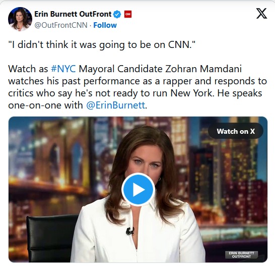 CNN Airs Cringeworthy Video of Socialist NYC Mayoral Candidate Zohran Mamdani Rapping Praise for Organization Found Guilty of Funding Hamas