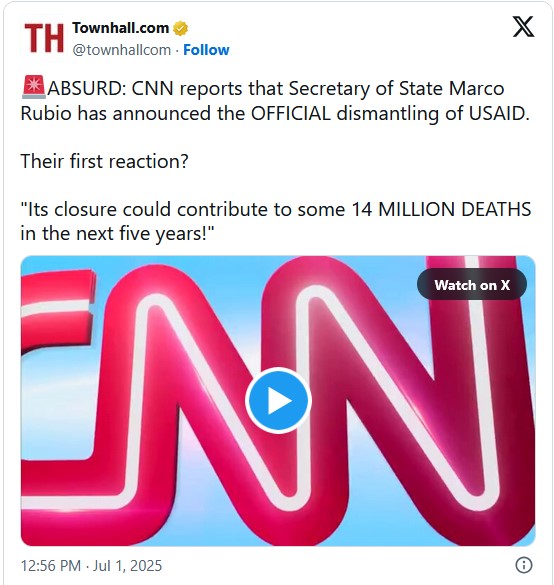 As expected, fake news CNN is hyperventilating and claiming USAID’s closure could contribute to 14 million deaths in the next five years.