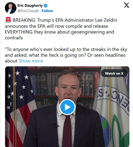 EPA Administration Lee Zeldin just announced that his Agency will release everything they know about geoengineering and “contrails”.