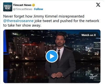 Justice: Remember When Kimmel Lied to Help Cancel Roseanne? Well, Now She’s Stepped up to Take Over His Job