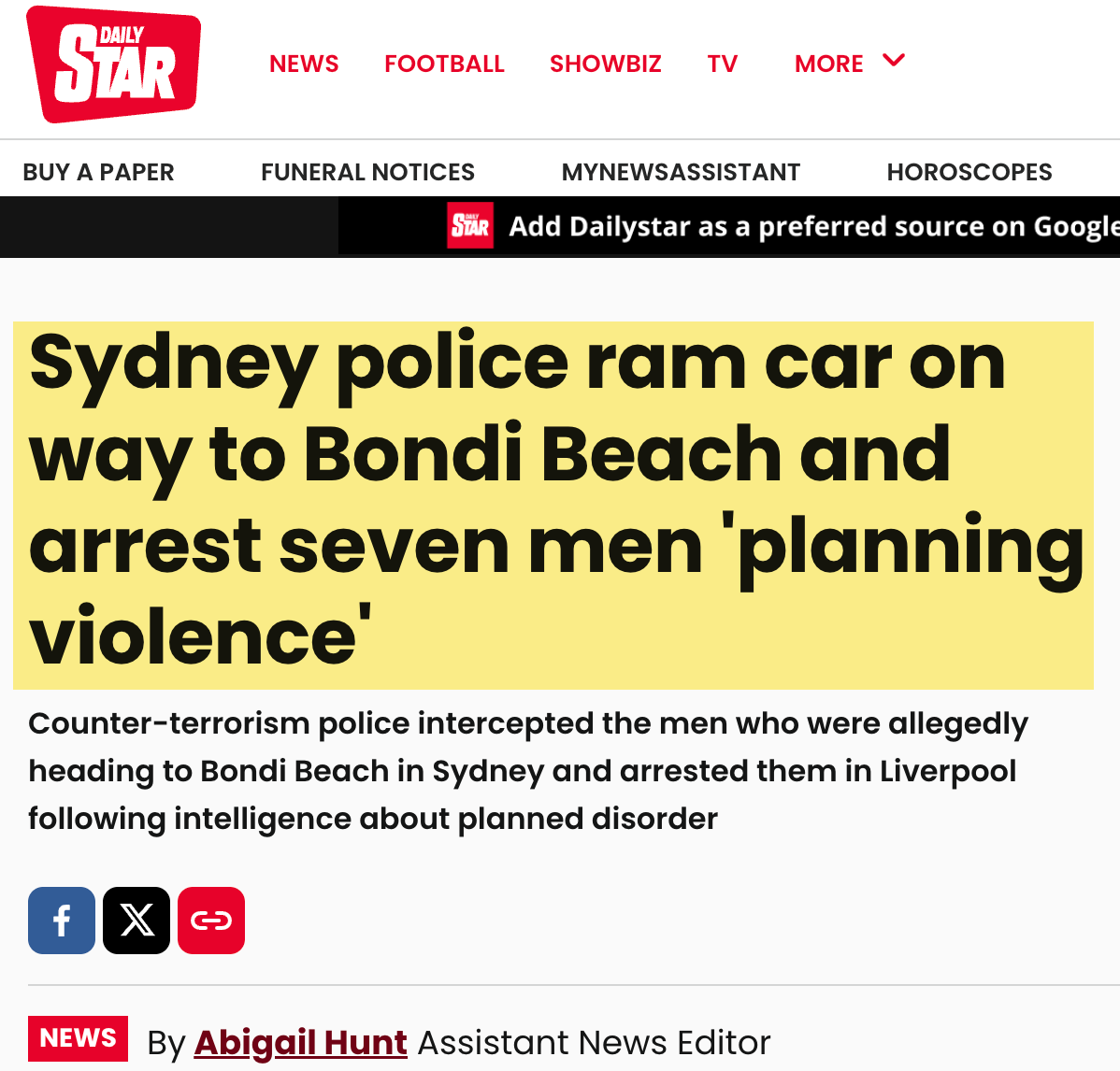 Sky News said NSW Police acted on intelligence given the heightened security environment following the Bondi Beach terror attack four days ago, which left 15 people dead and more than 40 injured at a Hanukkah celebration. The victims ranged in age from children to elderly adults, and the attack has been widely described as an antisemitic terrorist act by radical Islamists.