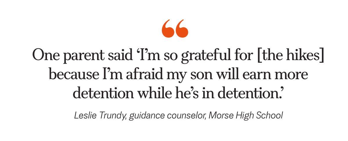 Trundy said the hiking detentions allow the teenagers to engage positively with nature and with her, allowing them to reflect on what they did wrong and how they can improve while also getting to know peers with whom they otherwise might not associate.