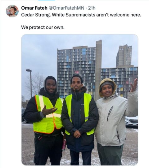 FOX NEWS David Marcus The X posts began with Fateh and two other men standing before the iconic Cedar Riverside towers with the message, “Cedar Strong. White Supremacists aren’t welcome here. We protect our own.”