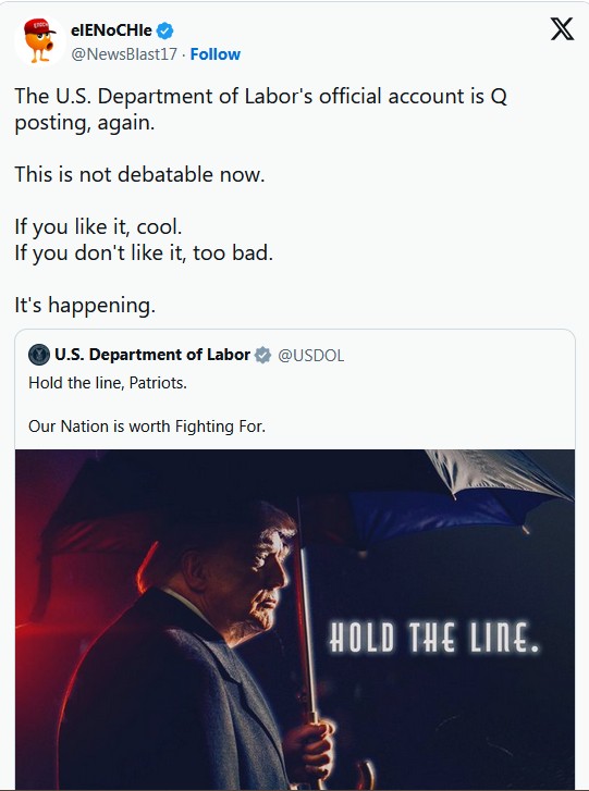 Ok, now flash-forward to today and for the third time in a week the US Department of Labor’s official X account has posted yet another famous “Q” line.
