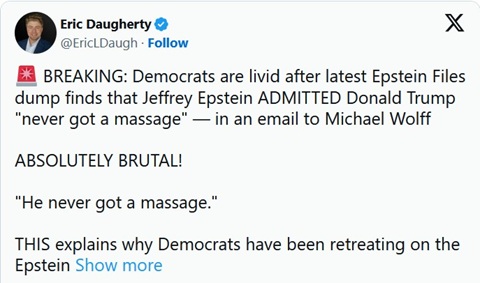 The announcement came after the U.S. Department of Justice dumped millions of pages of newly unsealed Epstein-related records into the public domain, documents the corporate media spent years hyping as a supposed smoking gun against Trump.