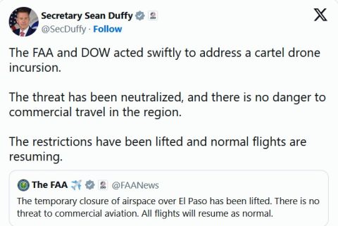 Cartel Drone Breach of US Airspace Responsible for Closure of El Paso, TX Airspace – FAA Rescinds 10-Day Closure After Threat “Neutralized”