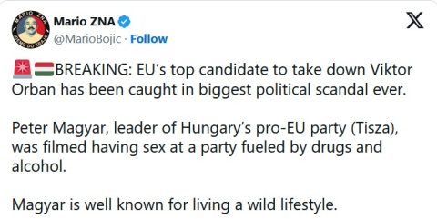 The upcoming elections in Hungary are on fire, as the Globalist candidate Peter Magyar finds himself again the focus of a sex and drug scandal targeting his lifestyle choices.