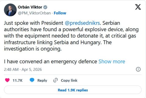 “Serbian President Aleksandar Vučić announced on Sunday morning that army and police found explosives that had been placed near a pipeline that carries gas to Serbia and Hungary.
