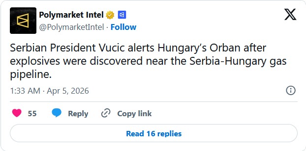 POWDER KEG EUROPE: Serbian President Vučić Says Explosives Were Found Near a Pipeline Carrying Gas From Russia to Serbia and Hungary