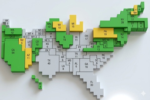 According to the League of Women Voters, “Six additional states with 65 electoral votes (Arizona, Michigan, New Hampshire, Nevada, Pennsylvania, and Wisconsin) are especially promising places for obtaining the 48 electoral votes needed before 2028.”