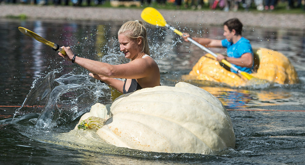 Pumpkin Regatta! Dozens of Enthusiasts Race in Real Vegetables Instead of Canoes