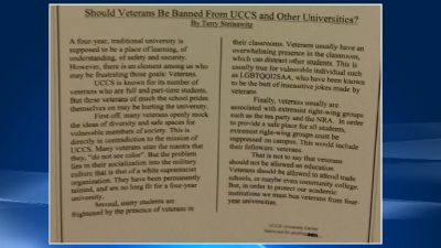 Newsletter on UCCS: ‘Veterans should be banned from four-year universities’