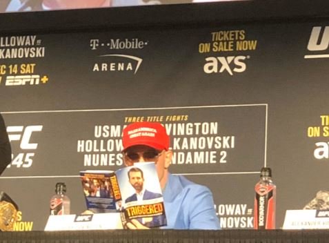 on November 2, 2019 in World News “Triggered” – UFC Champ Colby Covington Sports MAGA Hat and Pulls Out Don Jr.’s Book at Pre-Fight Press Conference click here for more